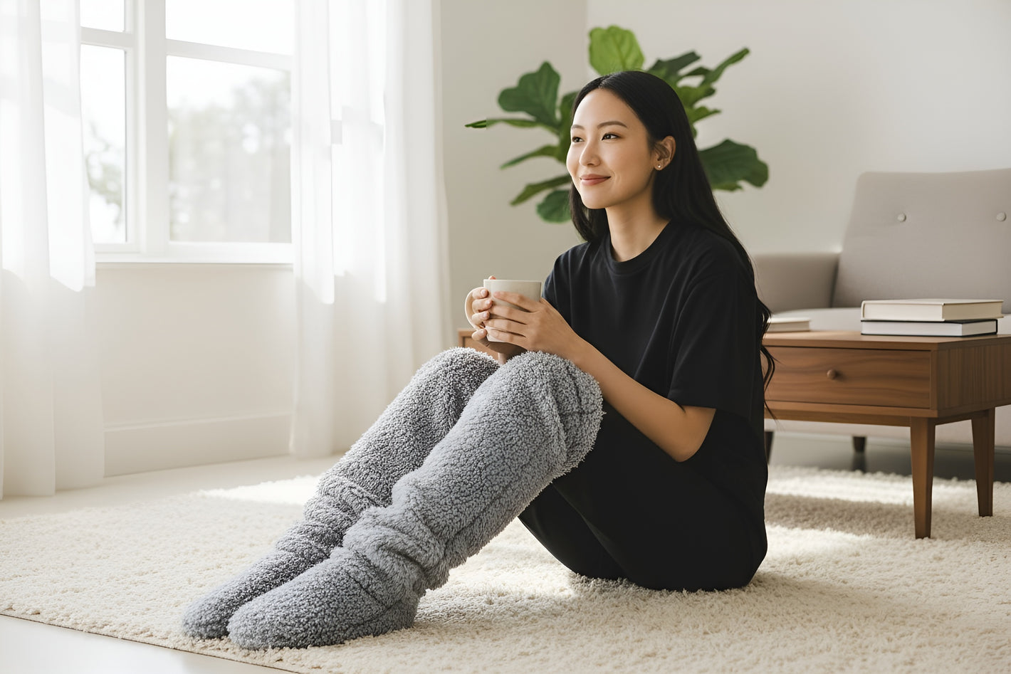 These ultra soft socks wrap your legs in cozy comfort while keeping skin dry and fresh. The plush knit and breathable weave help calm cold, tired legs perfect for anyone who hates waking up with frozen feet or damp socks.